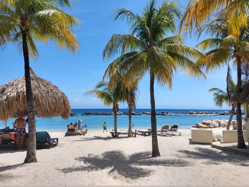 Als het bij jullie alweer maandag is tikt de klok hier iets over 19.00 uur aan. Wat heerlijk en ook nog ongelooflijk dit weekend. Af en toe als ik van mijn ligbed op het strand opkijk en de palmbomen zie kan ik me nauwelijks voorstellen dat het echt is...we zijn op Curaçao, tropisch, magisch en soms ook weer niet. Niet vanwege bepaalde gedragingen van Niels die ons weer doet landen. Anders wakker is een feit, wat een mooie vogelgeluiden om mee op te staan. Zelf ben ik inmiddels fan van de oranje troepiaal, wat een leuk vogeltje en er zijn er meer; het suikerdiefje, de gele troepiaal, de musduif, Amerikaanse fregat enz. genoeg te ontdekken dus. Daar hebben we dit weekend een beetje voor gebruikt, ontdekken waar we boodschappen moesten doen en wat het kost. Ontdekken hoe het eiland is, ontdekken dat het vroeg donker is, ontdekken dat het warm is en natuurlijk ontdekken waar het sea-aquarium is. Daar begint morgen onze reis met de therapie. We mogen binnen lopen bij het sea-aquarium wanneer we willen. Vandaag daar al eens even gekeken naar vissen, flamingo's, haaien en natuurlijk alvast wat dolfijnen gespot. Natuurlijk hebben we het zwembad bij ons fijne hotel ook gevonden en dit zorgde voor de nodige verkoeling die hier wel nodig is. Straks ons bed in en op naar morgen, we zijn zo benieuwd... Wat vindt hij überhaupt van alles, is wat we zouden willen haalbaar of gaat het een andere richting op. Vragen genoeg, geen verwachtingen maar openstaan voor alles. Morgen om 13.00 zal ons dolfijn avontuur gaan beginnen.