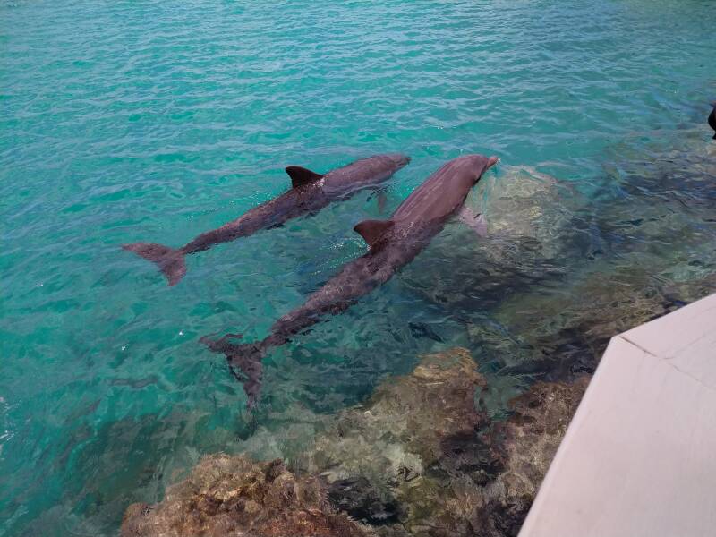 Waar de afgelopen dagen rond het middaguur de zon tevoorschijn kwam, scheen ze vandaag voluit na een regenbuitje in de ochtend. Voor Niels begon de dag op tijd, om 6.15 uur was duidelijk de dag begonnen. We kijken dan een filmpje, ontbijten vast op ons gemak en wat later in de ochtend komen de broers één voor één tevoorschijn. In de ochtend soms een klein wandelingetje en nog even rusten voordat de therapie begint. De 'therapie' kleding aan, lunchen en gaan. Vandaag was Niels wat timide hadden wij de indruk. Zijn dolfijnen waren weer wat allerter dan gisteren. Vandaag bekeken Reinier en ik het van de andere kant, wel volop in de zon maar net een stukje dichterbij. Zo konden we ook beter zijn reactie zien als er wat gebeurde met de dolfijnen. Je ziet Niels enorm genieten als er actie plaats vindt, maar ook tijdens de zwemrondes zie je hem steeds het contact zoeken en de dolfijn aaien. Van Patrick begrepen we dat hij het beter toelaat om zijn hand vast te pakken en samen bv een commando te geven. Tegen het eind kreeg Patrick ook wel het idee dat het genoeg was voor vandaag. In de nabespreking hoorden we dat hij het binnen heel goed had gedaan. Hier is ook een stukje van gefilmd, dat heeft hij dan ook gauw in de smiezen. Net als dat wij op een andere plek zaten en het van een andere kant bekeken. Het kiezen ging goed, net als het voelen en massage. Er wordt duidelijk aangegeven dat Niels het eigenlijk wel allemaal begrijpt. Het zou mooi zijn als dit een ingang biedt wat we verder kunnen uitbouwen. Op naar morgen, het gaat wel snel allemaal.