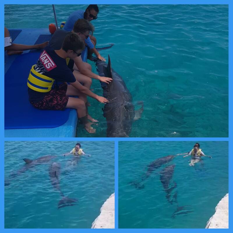 Vandaag kregen we in de ochtend informatie over dolfijnen. De moeite waard en veel nieuwe dingen gehoord. Ook waarom de dolfijn vorige week 'off' stond, de dames zijn tijdens een eisprong meer geïnteresseerd in andere zaken 😉 Dit wordt dan ook geaccepteerd en de beesten worden niet gedwongen om dan dingen te moeten omdat er therapie is. In de middag naar de therapie, benieuwd, gespannen en in afwachting of de dolfijn er meer 'zin' in zou hebben. Bij aankomst zwommen ze stoeiend rond, dus dat was al een goed teken. Niels ging vandaag niet met de lift te water maar liep, met hulp, naar het dok. Vanaf daar het water in, wat eigenlijk heel goed ging. Al gelijk merkte we dat de dolfijn er zin in had en zagen we een hele andere sessie dan vorige week. Niels genoot zichtbaar en mooi om te zien dat hij zelf zijn hand uitsteekt en de dolfijnen aait. De therapeut kon ook hem beter vasthouden, bv aan zijn hand om samen te voelen wat hij vorige week niet toeliet. Wonderlijk vond ik zelf dat Chabelita deze keer zo dichtbij mocht komen om een kus te geven. Vooral het een poos volhouden was mooi om te zien. Voorheen zou hij haar van zich af duwen. Via het dok weer uit het water ging ook prima, dus ze zullen dit de komende dagen ook zo gaan doen. Bij het douchen en aankleden na de sessie, ging dit beter. Niels was meer ontspannen en kon na de intensieve sessie die prikkels toch beter aan. Dit is dan merkbaar in zijn gedrag. Voor het zwemmen is er geoefend met diepe druk massage, de verzwaringsdeken, prikkelbal. Hier liet Niels veel meer toe dan vorige week waaruit blijkt dat de prikkels beter te regulieren waren. Hij kon zelf, via de kaartjes, aangegeven of oefeningen nog een keer herhaald mochten worden of dat het genoeg was. Al met al een mooie sessie. Even naar huis om te rusten want ja hier wordt je natuurlijk wel moe van. Zelf ging ik door naar de workshop sensorische integratie waar ik weer nieuwe tips en trics meekreeg om thuis mee aan de gang te gaan. Veel kennis en een andere kijk hoe je sensorische integratie aan kunt pakken en wat er allemaal onder valt. Na al deze informatie gauw naar huis, even wat drinken en vrij snel naar de Pelican Express om samen met andere gezinnen te gaan varen. Ondertussen de zon onder zien gaan en genieten van de deining op het water. Weer terug op de opstapplaats naar ons 'plekkie' nog even wat eten en daarna was het bij Niels op. Bij de siblings nog niet die gingen daarna nog lekker met elkaar chillen. Een mooie dag met veel informatie, input en nieuwe mogelijkheden.