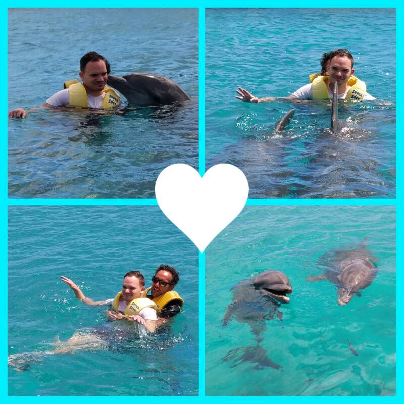 Na nog even een rustmoment in de ochtend, togen we na de lunch richting CDTC. Vandaag werden we om 12.30 uur verwacht om kennis te maken met de therapeut (Patrick) en informatie te delen. Na de nodige kennis te hebben uitgewisseld werd Niels in zijn wetsuit gehesen. Gelukkig kon Kamal, de begeleider die met ons mee is, een helpende hand bieden en tips geven. Niels ging met de lift te water wat best fijn voor hem was omdat dit zeer gedoseerd gaat. Inmiddels waren wij op onze meekijk plek aangekomen, hiervandaan komen de foto's en filmpjes. Wat overigens niet meevalt met die harde wind. Gelukkig had Niels niet bedacht om de oceaan leeg te drinken,wat hij in een zwembad nog weleens probeert. De dolfijn die Niels gaat helpen de komende tijd is Chabelita. Chabelita is veertien jaar blijften de langste dolfijn in het CDTC, op haar snuit heeft ze een soort van hartje. Vandaag blijft het bij een kennismaking en het aanraken, aaien van haar. Voor Niels met een flinke sensorische afweer al een hele uitdaging. Heel even is er ook geoefend met ja en nee. Op een gegeven moment zagen we wel dat het voldoende was voor deze dag. De spanning bouwde zich op en ook Patrick mocht dit ervaren. Het is ook heel wat,een strak pak, nieuwe indrukken en prikkels, vastgehouden worden en aaien. Voor vandaag voldoende en met hulp van Kamal douchen en aankleden, want ja een man die al zijn kracht in de strijd kan gooien blijft een uitdaging om weer te laten relaxen. Nog even napraten wat Patrick heeft ervaren en hoe we morgen verder gaan. Sowieso gaat Niels werken aan sensorische integratie en mogelijkheden ontdekken wat ja en/of nee is. Spannend wat het hem gaat brengen was het al maar nu gaat het 'echte' werk beginnen. Terug in het hotel even rusten, maar meer om tot zichzelf te komen dan dat hij een dutje heeft gedaan. We kijken alweer uit naar morgen.